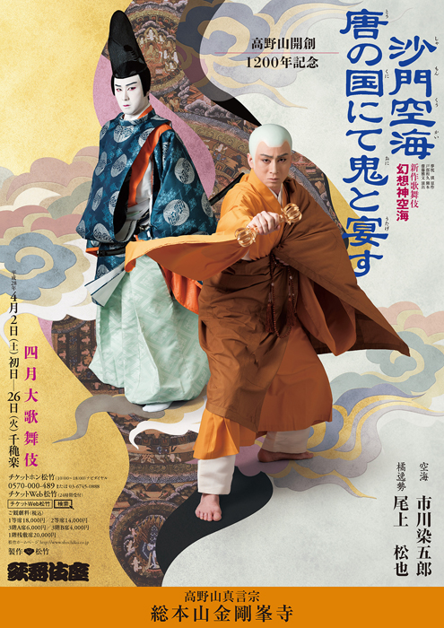 夢枕獏「沙門空海唐の国にて鬼と宴す」(徳間文庫・角川文庫)が歌舞伎座で上演されます。 四月大歌舞伎 夜の部 新作歌舞伎 「幻想神空海 沙門空海唐の国にて鬼と宴す」 高野山開創一二〇〇年記念 夢枕 獏 原作 戸部和久 脚本 齋藤雅文 演出 空 海 染五郎 橘 逸勢 松也 楊貴妃 雀右衛門 皇 帝 幸四郎 詳しくは「歌舞伎公式サイト歌舞伎美人」特設サイトをご覧下さい。 http://www.kabuki-bito.jp/special/kabukiryoran/05/index.html | ||