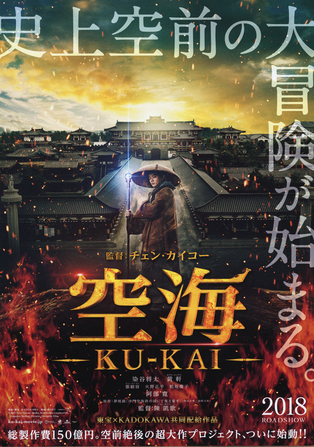 原作:夢枕獏『空海 -KU-KAI-』(監督:チェン・カイコー)、ポスタービジュアルです。 2017年後半に中国で公開、2018年前半日本公開。 公式HPでキャスト情報などをご覧下さい。 http://ku-kai-movie.jp | ||