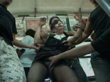 変態男達が乗車するバスに通学のために乗ってきた女●●生達。男達が忍び寄って体を触り始める。シャツのボタンを外してブラをずらして乳を揉みまくり、スカートを捲ってパンティー内に指をねじ込む。イヤがって抵抗する少女は体を押さえ込まれて身動きが取れない。生肉棒をバックから、正常位からガンガン挿入されて、次々に精子を中出しされていく。ぶっかけられて顔もドロドロ、泣くじゃくって無惨な姿になっていく。