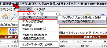 「ツール」→「ポップアップブロックの設定」をクリックします。
